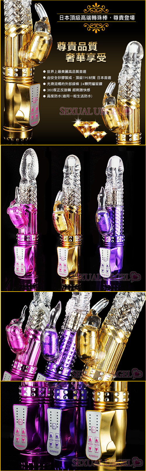 .主商品:日本奢寵皇者-潮吹神器6x10防水轉珠按摩棒(皇家臻金)X1