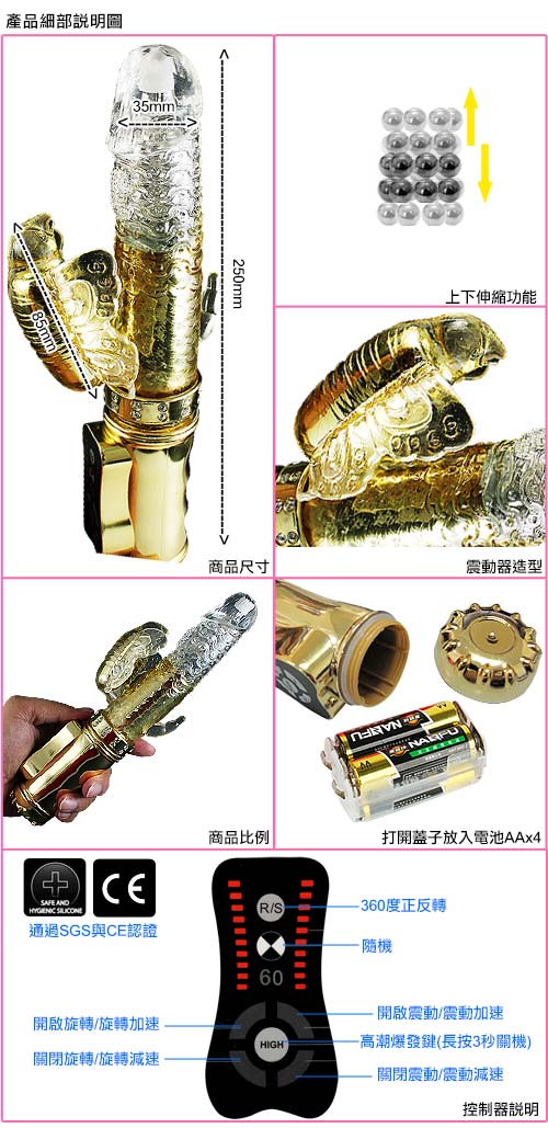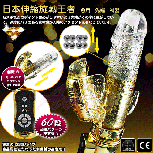 .主商品:王者朱雀-60頻三叉防水內伸縮滾珠旋轉按摩棒-皇家金X1