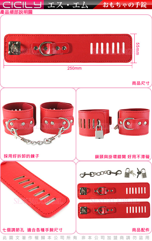 虐戀精品CICILY-紅色M女-俘虜手銬(帶鎖)
