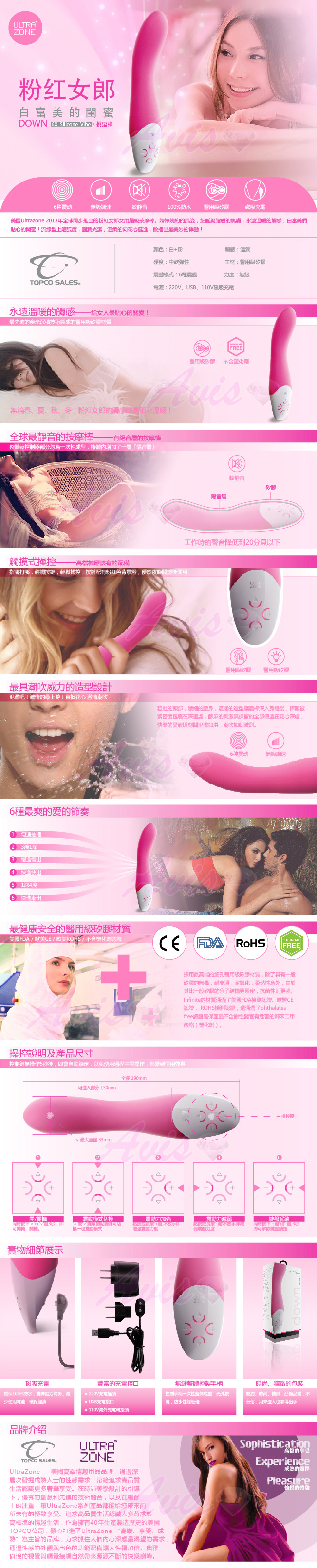 Ultrazone 2013年全球同步推出粉紅女郎女用超級按摩棒,娉婷婉約的風姿,細膩凝脂般的肌膚,永遠溫暖的觸感,女性貼心的閨蜜,流線型