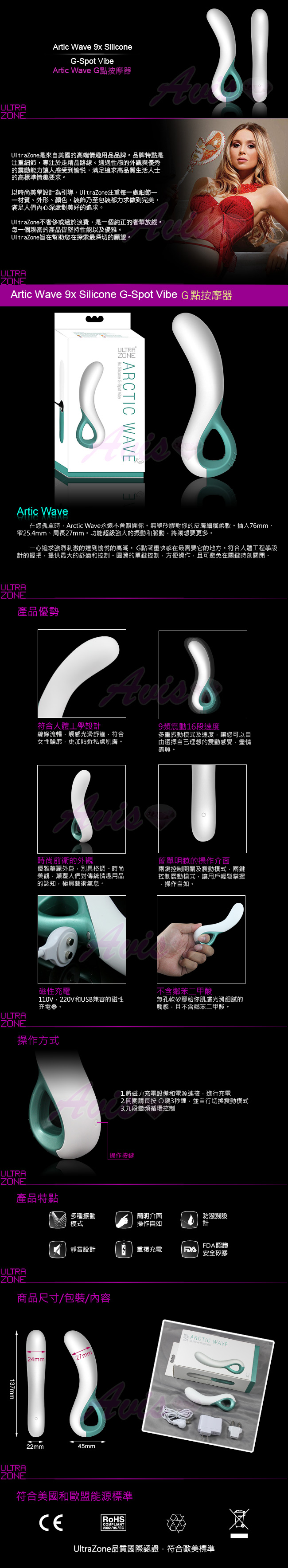 .主商品:美國Ultrazone-Arctic Wave 磁吸式充電 9X16段G點按摩棒 *1