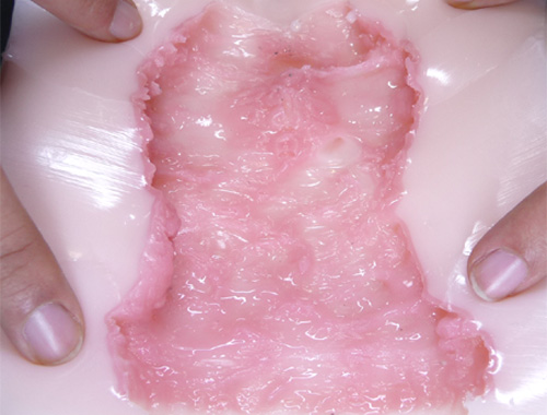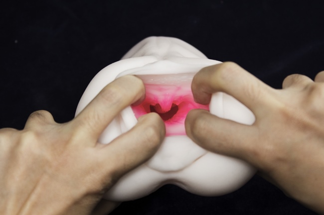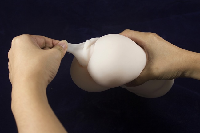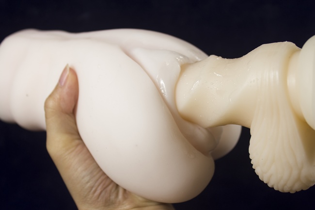看得出來,名器相當有彈性,名器本身有些許硬度,並不是軟趴趴的矽膠,所以拿起來的感覺是又厚又有彈性
