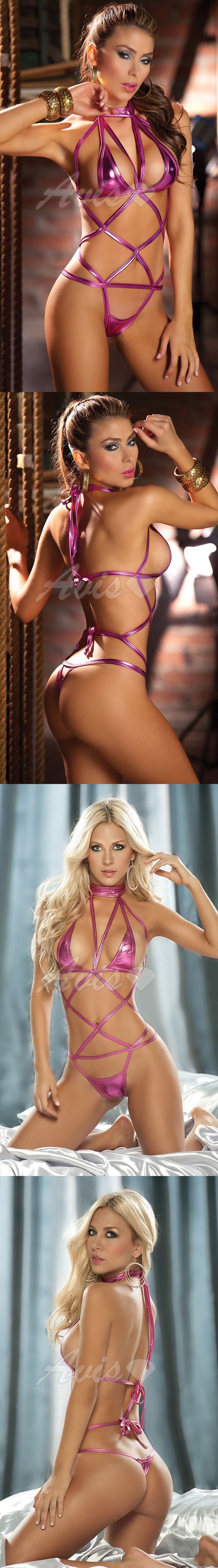 .主商品:虐戀精品CICILY-自投羅網 連身式 美胸塗膠仿皮性感彈力 緊身膠衣-玫瑰紅*1