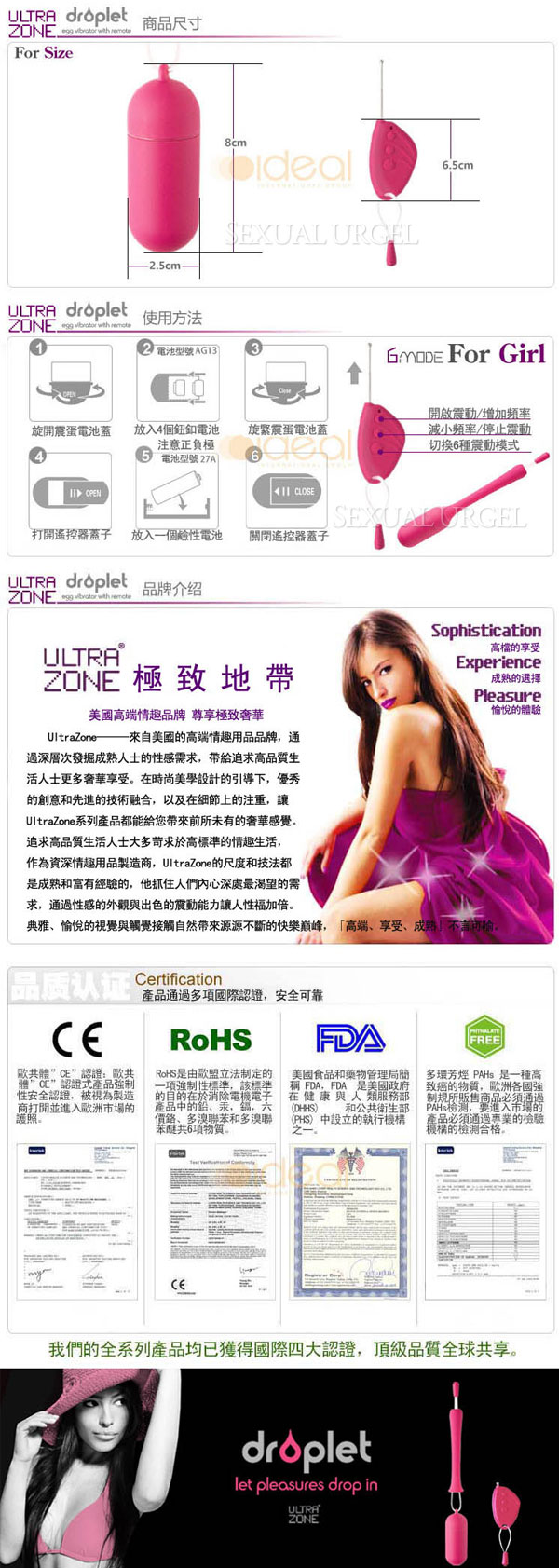.主商品:美國 Ultrazone Droplet snow drop 夢幻雪花 創意變形 遙控跳蛋 桃紅x1
