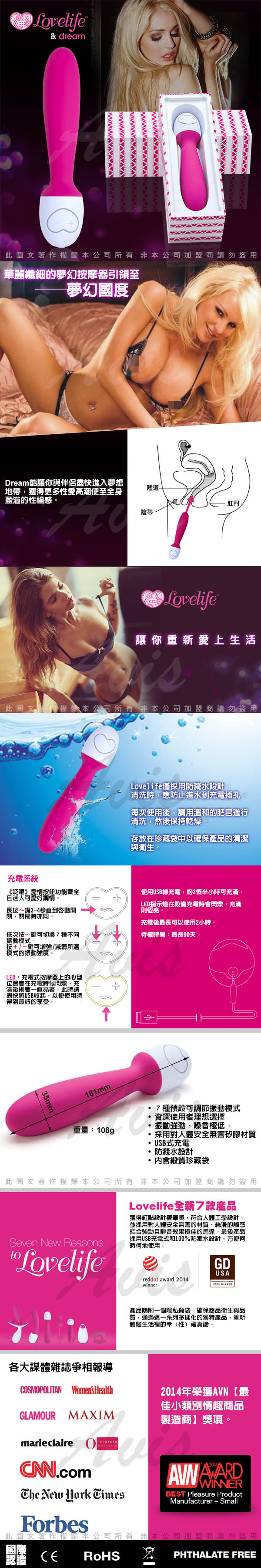 .主商品:美國Lovelife Dream 追夢 7段變頻 震動按摩棒 x1