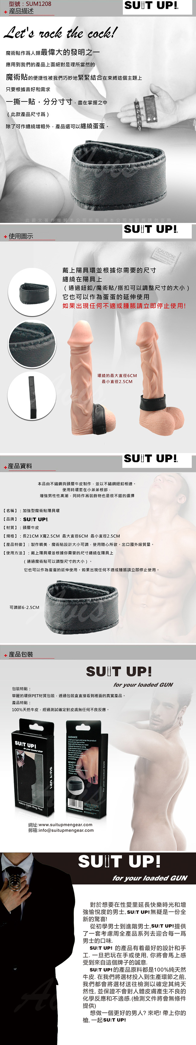 .商品內容:SUIT UP! SM情趣 加強型魔術貼陽具環   X1