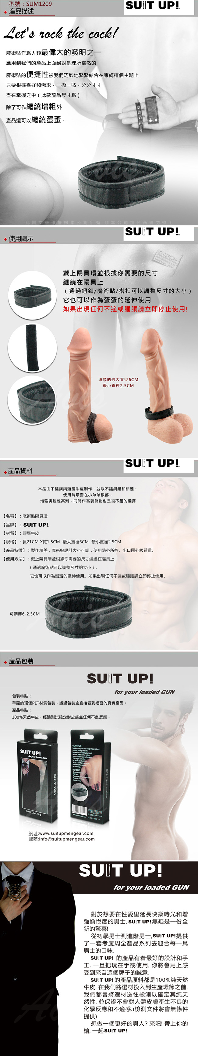 .商品內容:SUIT UP! SM情趣 魔術貼陽具環 X1