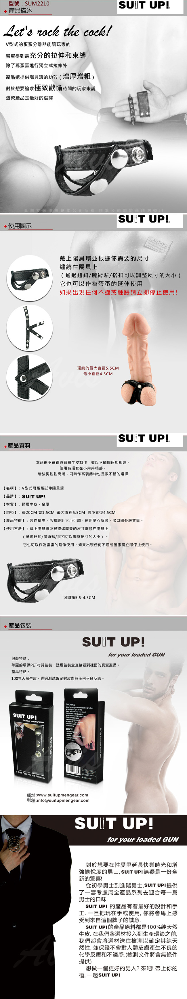 .商品內容:SUIT UP! SM情趣 V型式 蛋蛋延伸陽具環 X1
