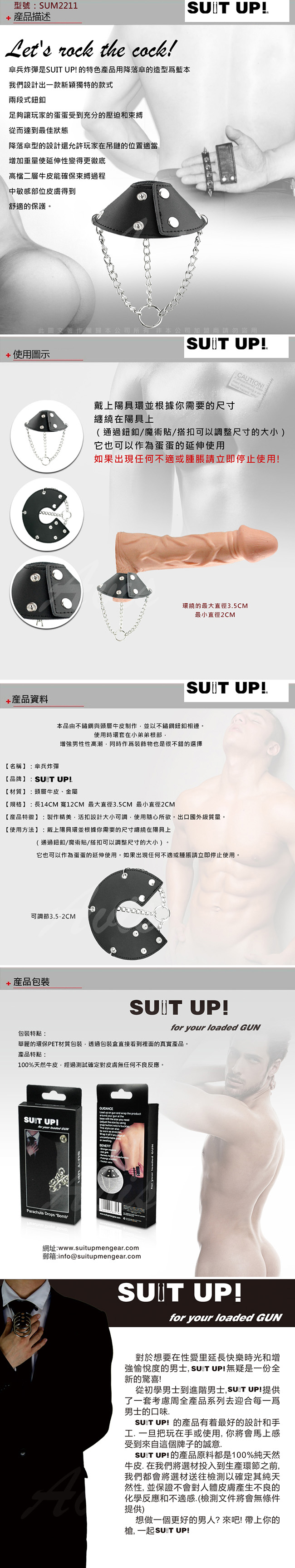 .商品內容:SUIT UP! SM情趣 傘兵炸彈 陽具環 X1