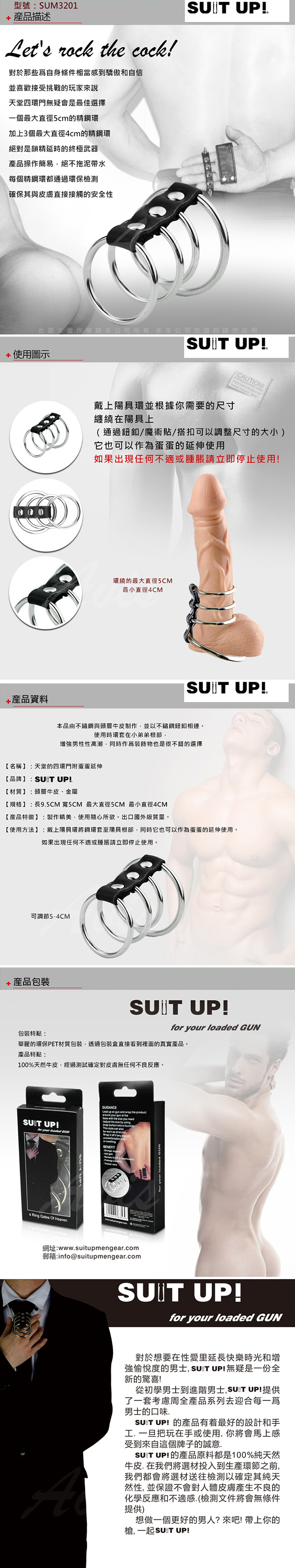 SUIT UP! SM情趣 天堂的四環門附蛋蛋延伸 陽具環