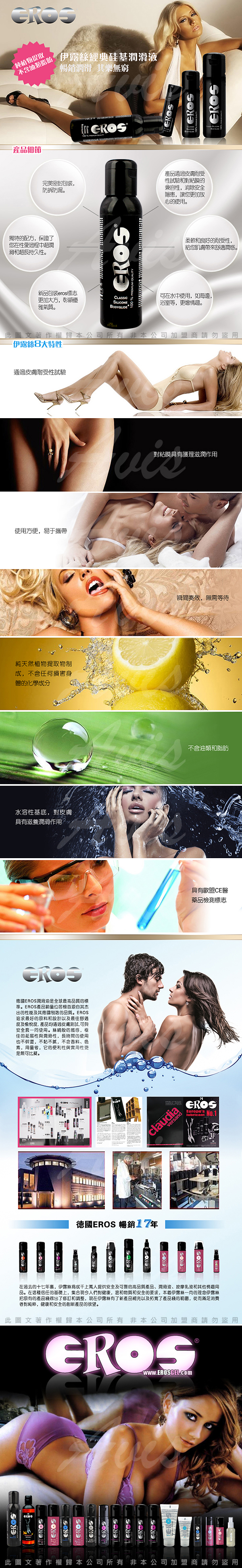 .主商品:德國Eros-頂級長效型矽性防水潤滑液250ml