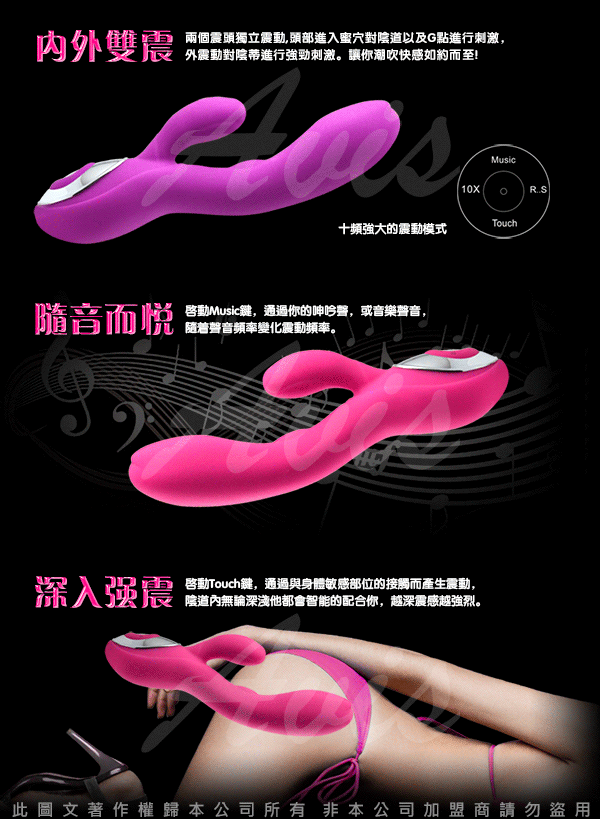 啟動MUSIC按鍵,通過您的呻吟聲,或音樂聲,隨著聲音頻率變化震動