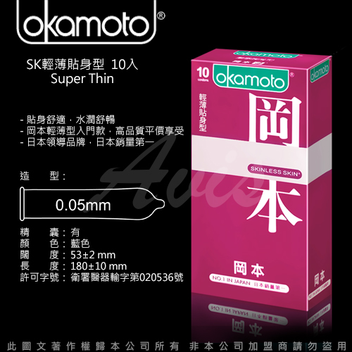 品名:Okamoto岡本 Skinless Skin 輕薄貼身型保險套(10入裝)