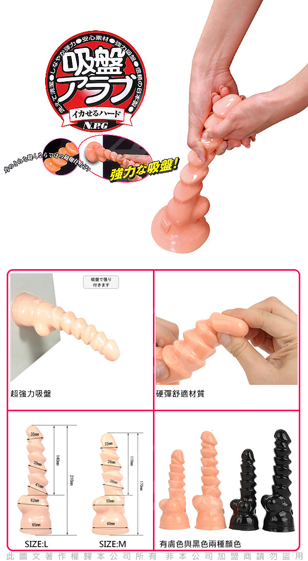 日本NPG阿拉伯強力吸盤陽具,多段龜頭形狀的設計,粗猛龜頭一波接一波,每次的插入與拔出對陰道後庭都是強烈的刺激,
