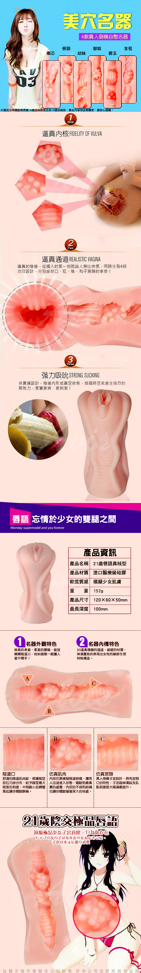 美穴名器 仿真吸夾 自慰器 21歲唇語