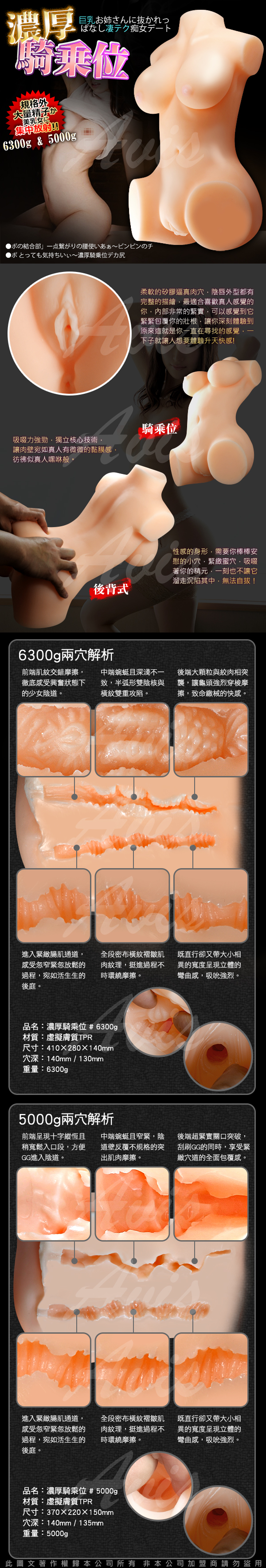 .主商品:濃厚騎乘位 雪莉寶貝 乳交/陰交/肛交(三種玩法)(仿真構造私處)自慰器 6.3KG