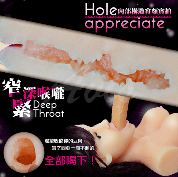 外形設計優美,線條流暢,豐滿的雙乳讓你盡情把玩絕對的手感;仿真3D構造女性陰部、嬌美陰唇的毫無保留的呈現,細緻嬌嫩,陰道設計窄緊,超柔軟的彈性體仿真得讓你無法分辨真假;豐滿的線條,性感的視覺效果……讓你隨時都有一個充滿激情與浪漫夜晚。還有喜歡更緊實的後庭性愛,絕不能錯過了,內部一樣也是3D構造喔