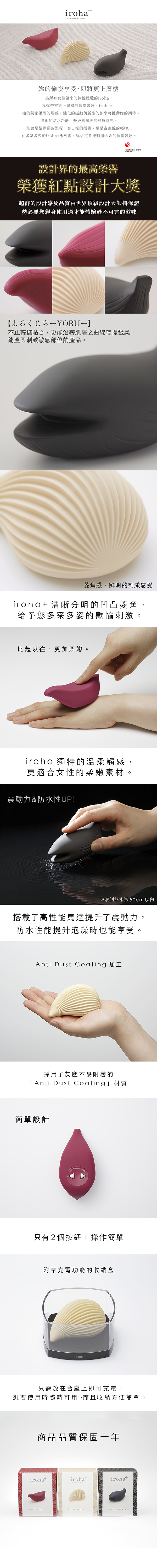 以可愛和風造型及柔軟手感作賣點的Iroha系列推出全新作品。採用軟觸感材料造,表面光滑且具細膩觸感。與肌膚配合度高,不會有黏膩或不自然的感覺 - 就像你的另一層肌膚。