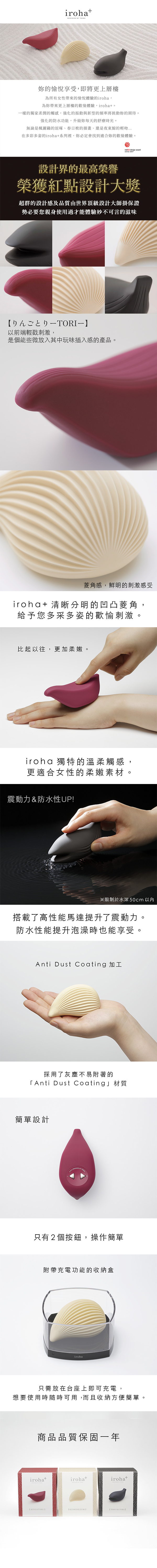以可愛和風造型及柔軟手感作賣點的Iroha系列推出全新作品。採用軟觸感材料造,表面光滑且具細膩觸感。與肌膚配合度高,不會有黏膩或不自然的感覺 - 就像你的另一層肌膚。