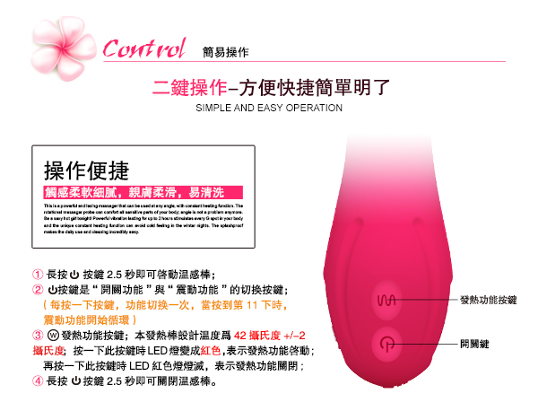 .主商品:香港UTOO KENDO 41度C智能矽膠10段變頻震動溫感棒 桃紅