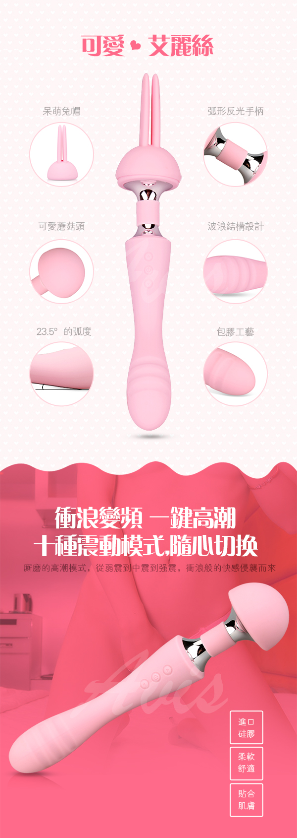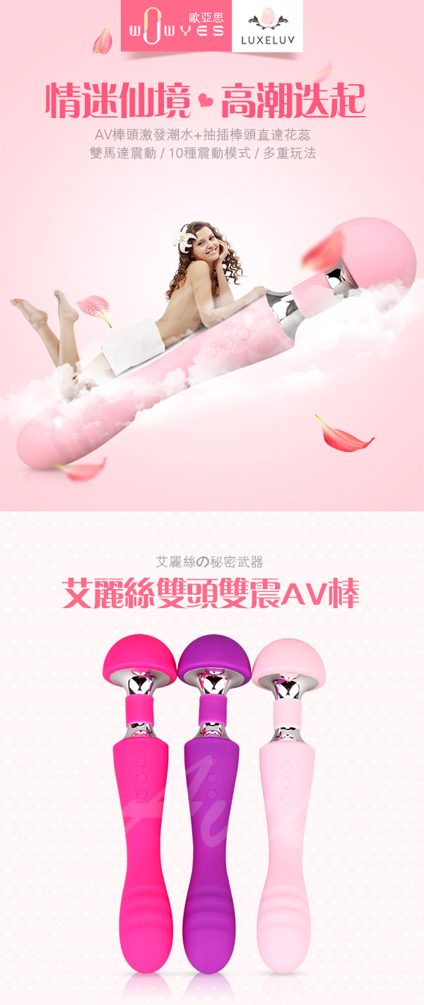 WOWYES i7 艾麗絲 10段變頻 雙頭雙震AV激震棒 磁吸充電 附贈萌兔按摩套