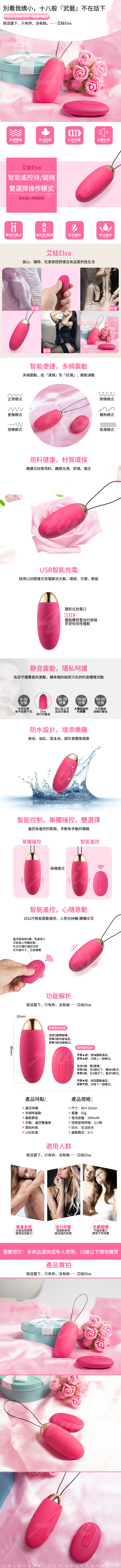 .主商品:美國SVAKOM Elva 艾娃 靜音防水 無線遙控 充電跳蛋