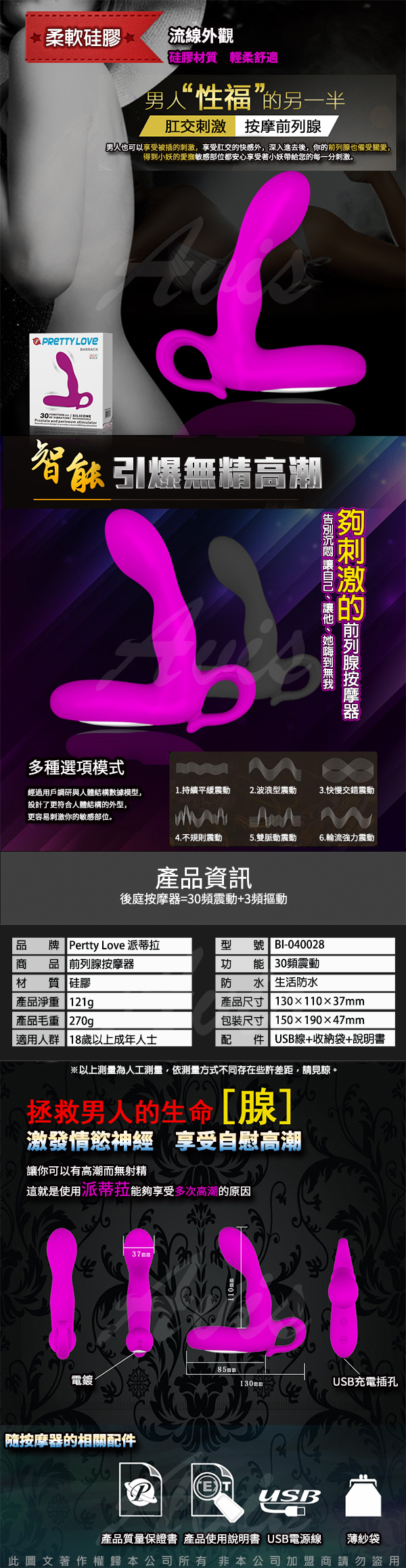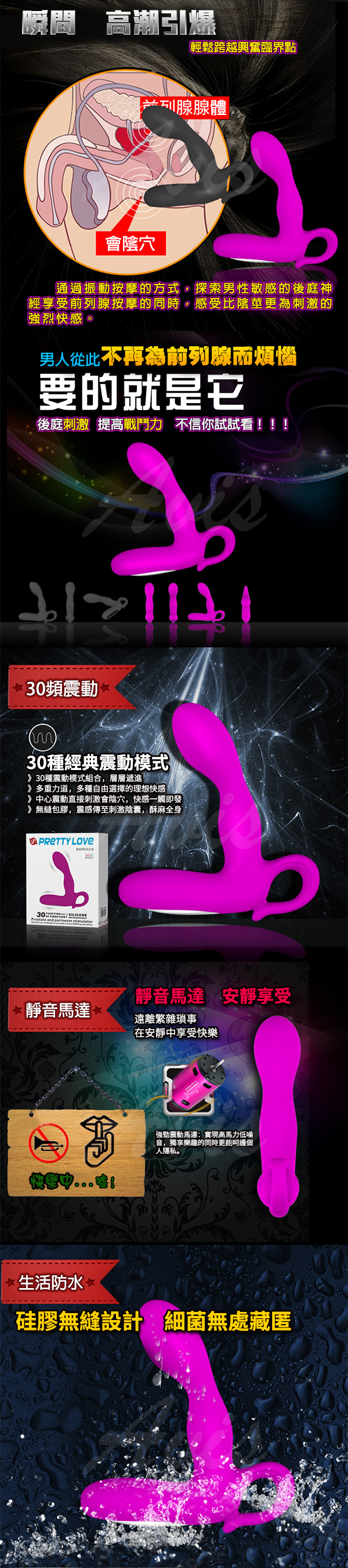 .商品內容:BARRACK 30頻 震動前列腺按摩器 把手款 USB充電式