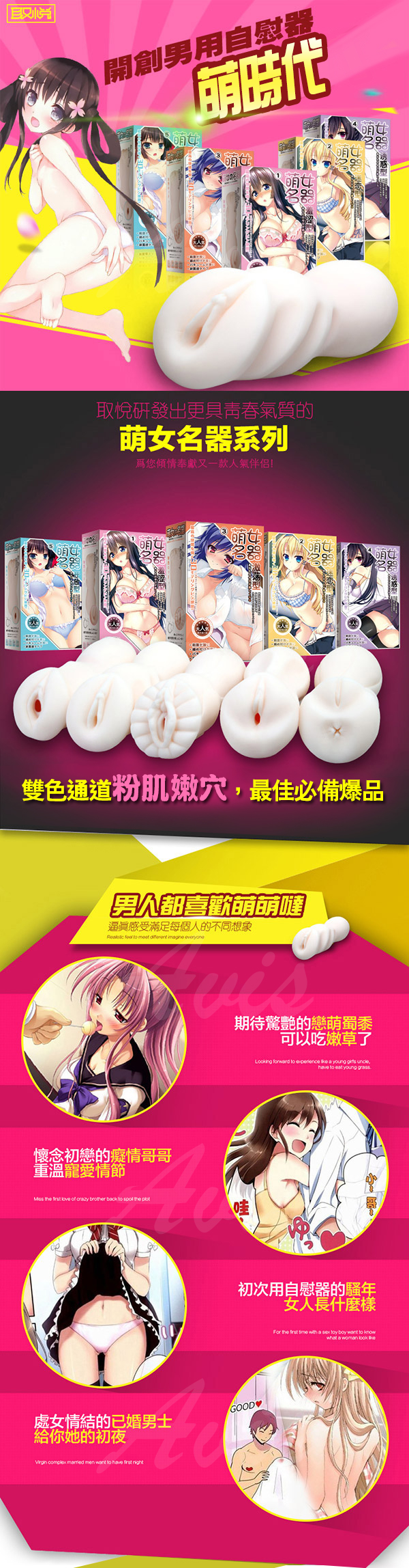.商品內容:萌女名器 雙色通道粉肌嫩穴自慰器-誘惑型4(附加溫棒)