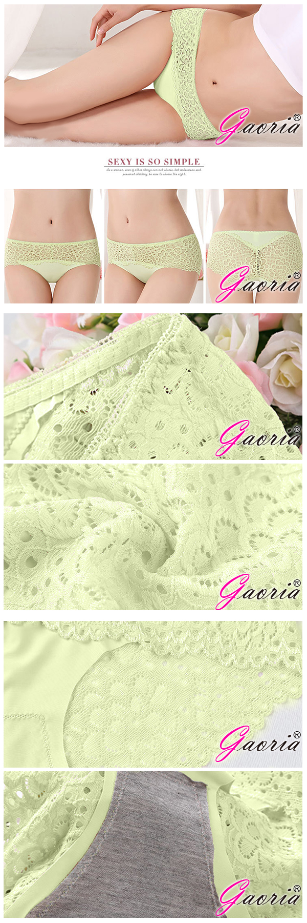 【Gaoria】狂潮熱戀 性感蕾絲拼接無痕 性感內褲三角褲 綠