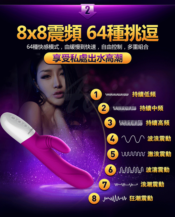 雙馬達強勁動力,8X8震頻,64種混合挑逗模式!