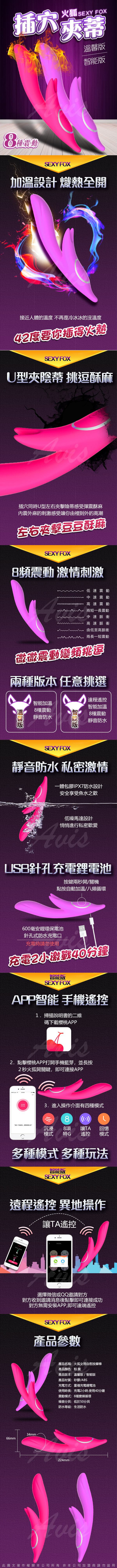 .商品名稱:火狐 8頻 抽插+夾震+智能加溫 女用自慰震動棒 溫馨版 紫