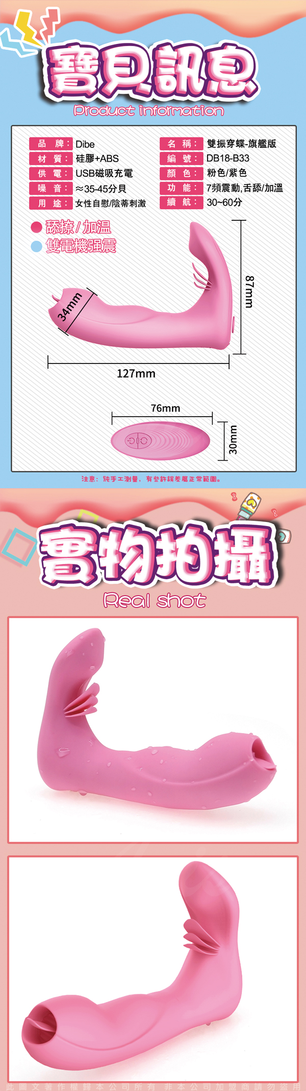 .主商品:Dibe-雙震穿蝶4代 7段變頻舌舔 加溫無線遙控穿戴震動棒-旗艦版-粉
