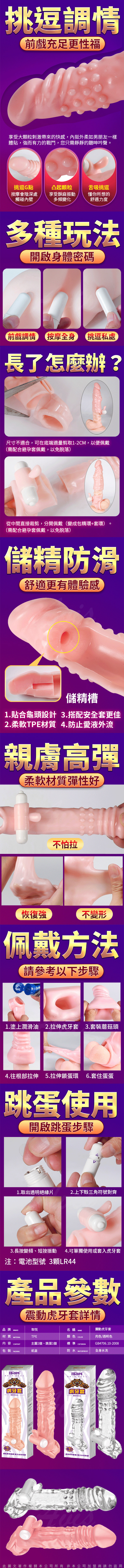 商品名稱:取悅 男用情趣用品震動虎牙套鎖精環增長套環
