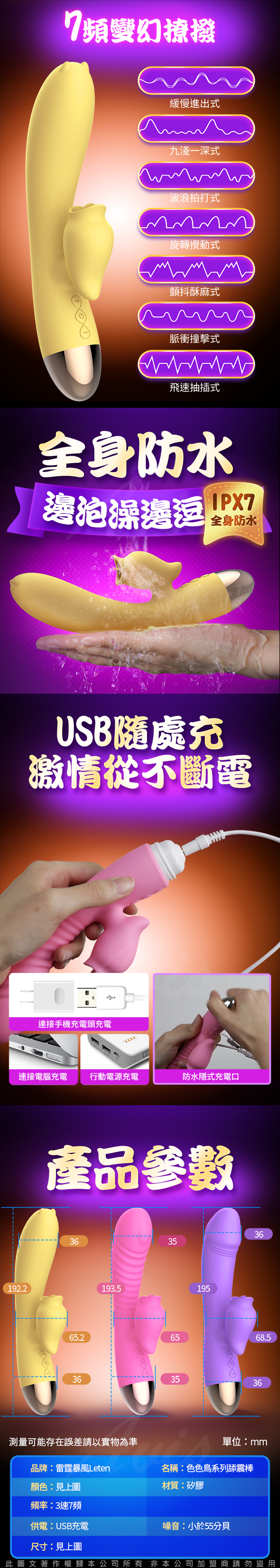 .商品名稱:Leten 色色鳥 三速七頻智能加溫舔震G點按摩棒
