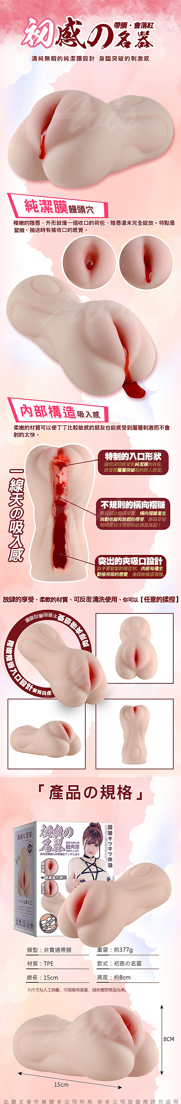.商品名稱:初夜の名器 初夜落紅緊致包裹自慰器-非貫通