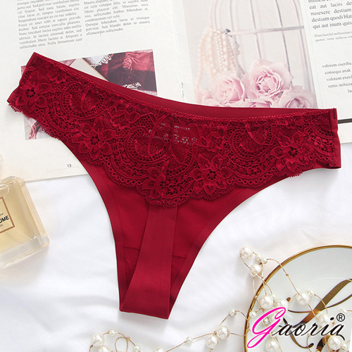 【Gaoria】寵愛甜心 無痕蕾絲花瓣冰絲 丁字褲 酒紅