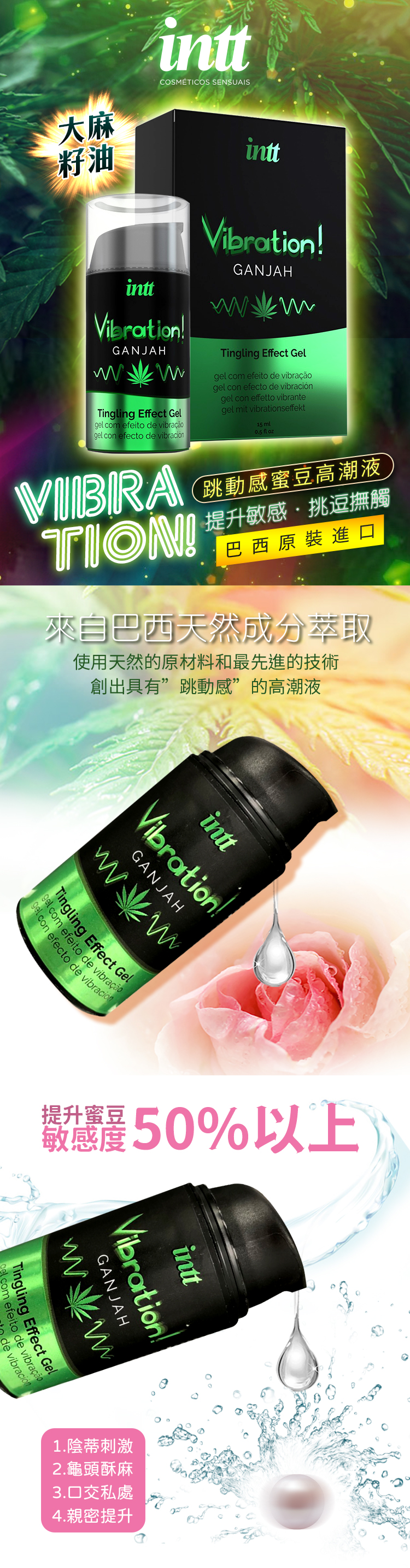 .主商品:巴西Intt Vibration 跳跳糖感 爆跳式高潮液 15ml (大麻籽油)