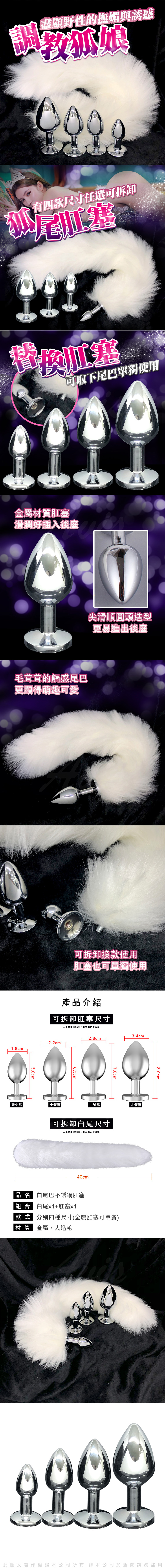 .商品內容:純白 可拆卸分離款 狐狸尾巴肛塞 SM情趣用品-中 2.8cm