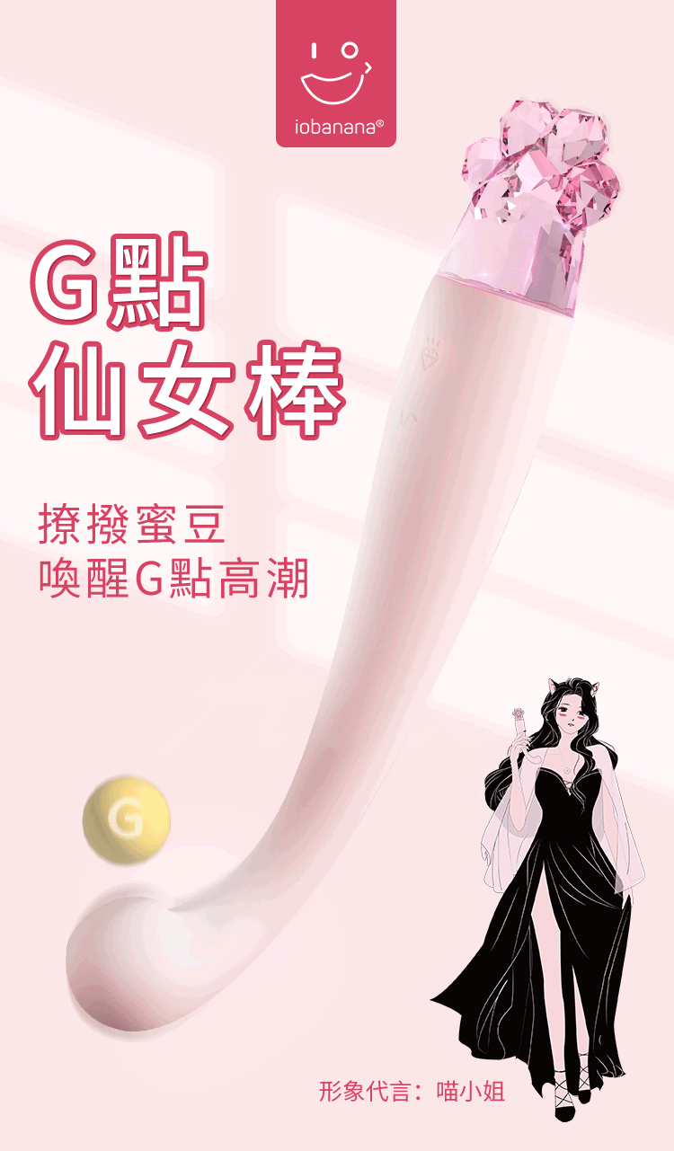 產品名稱:iobanana-G點仙女棒 喵掌 健康按摩棒產品重量:78g品牌:iobanana 工作時長:兩小時左右材質:ABS/矽膠/PMMA 充電時長:60min左右顏 色:仙女粉 工作聲音:37分貝