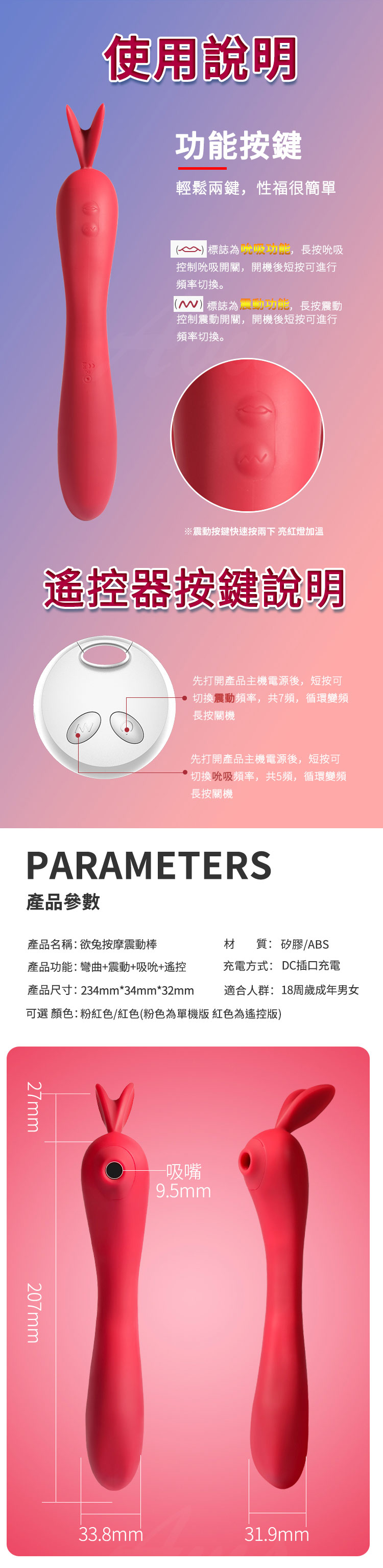 產品功能:彎曲+震動+吸吮