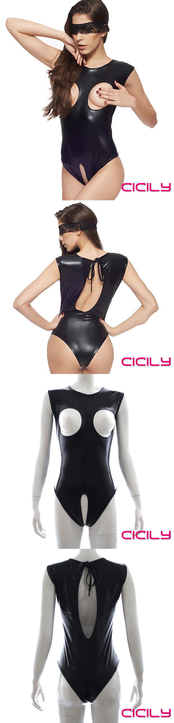 CICILY 黑色露胸漆皮 夜店表演 SM女王服裝 不含眼罩
