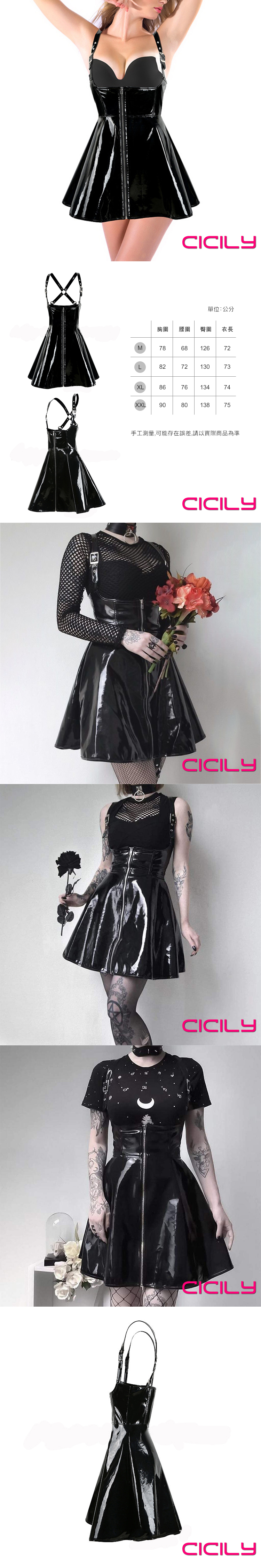 CICILY 誘惑天使 背帶漆皮短裙服裝 漆皮膠衣 黑 XL