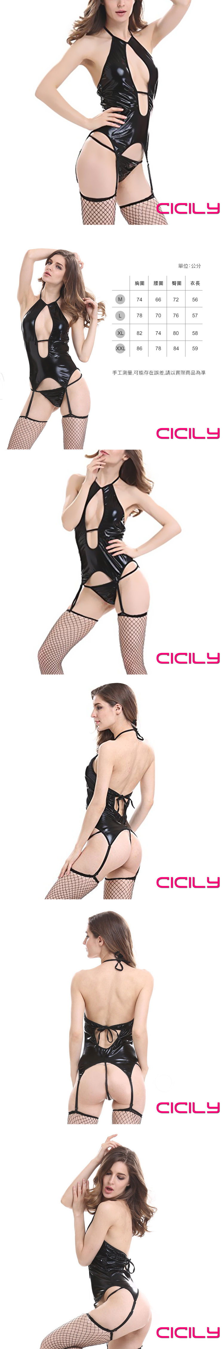 CICILY 國王皇后 鏤空漆皮質誘惑連體衣 黑 M