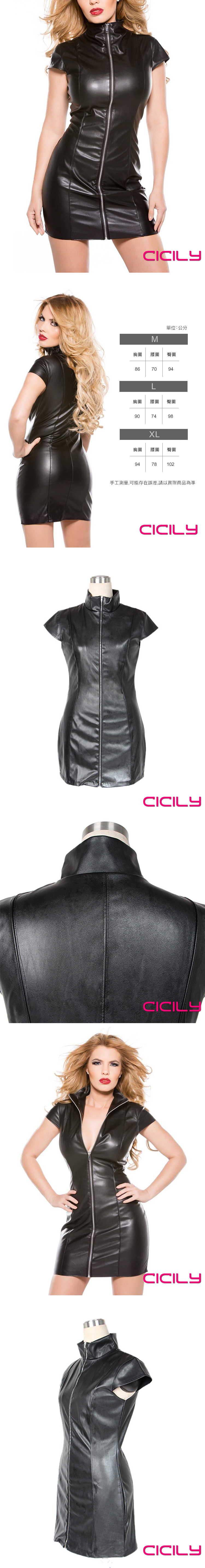 CICILY 慾火重生 漆皮拉鍊短裙 漆皮膠衣 黑 L