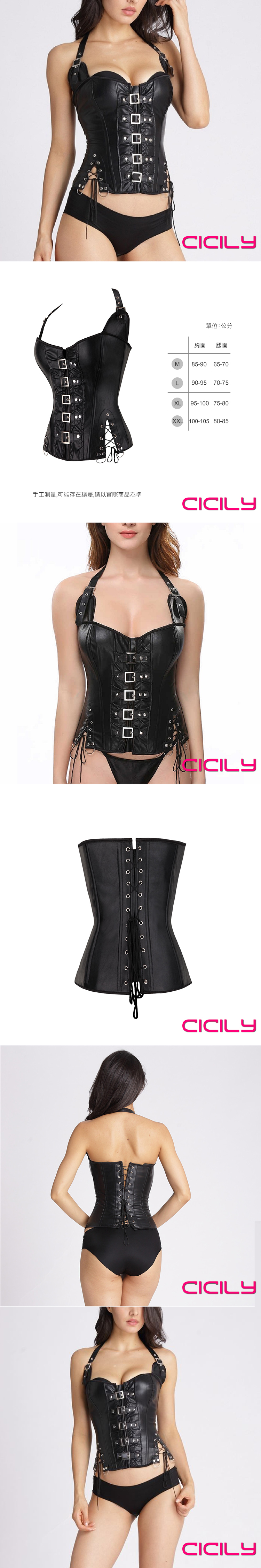 CICILY 女王的SM調教 掛脖束腰緊身衣漆皮膠衣 黑 XXL