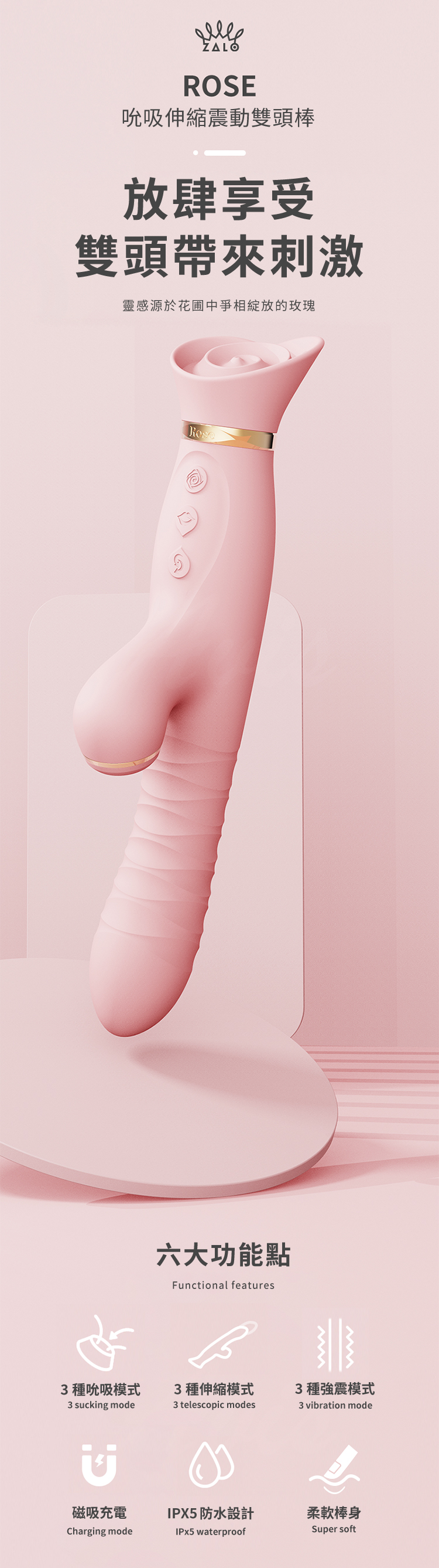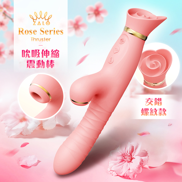 Zalo Rose Thruster 吸吮伸縮震動棒-草莓粉