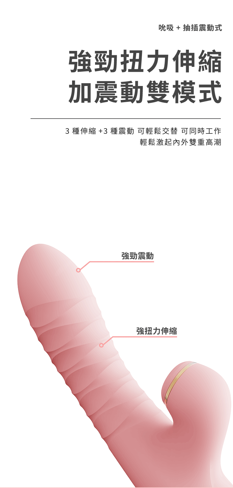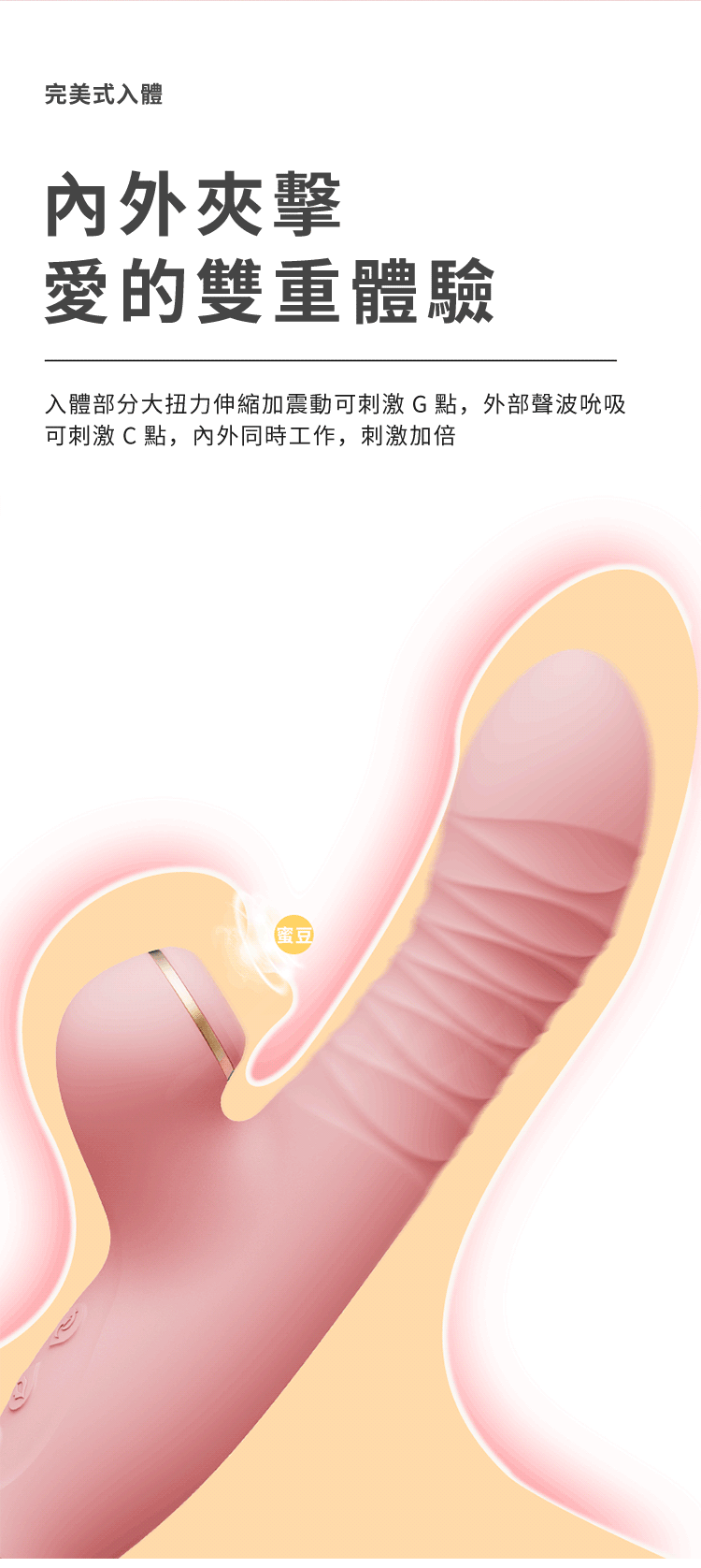 入體部分扭力伸縮加震動可刺激點外波吸可刺激C點,內外同時工作,刺激加倍蜜豆