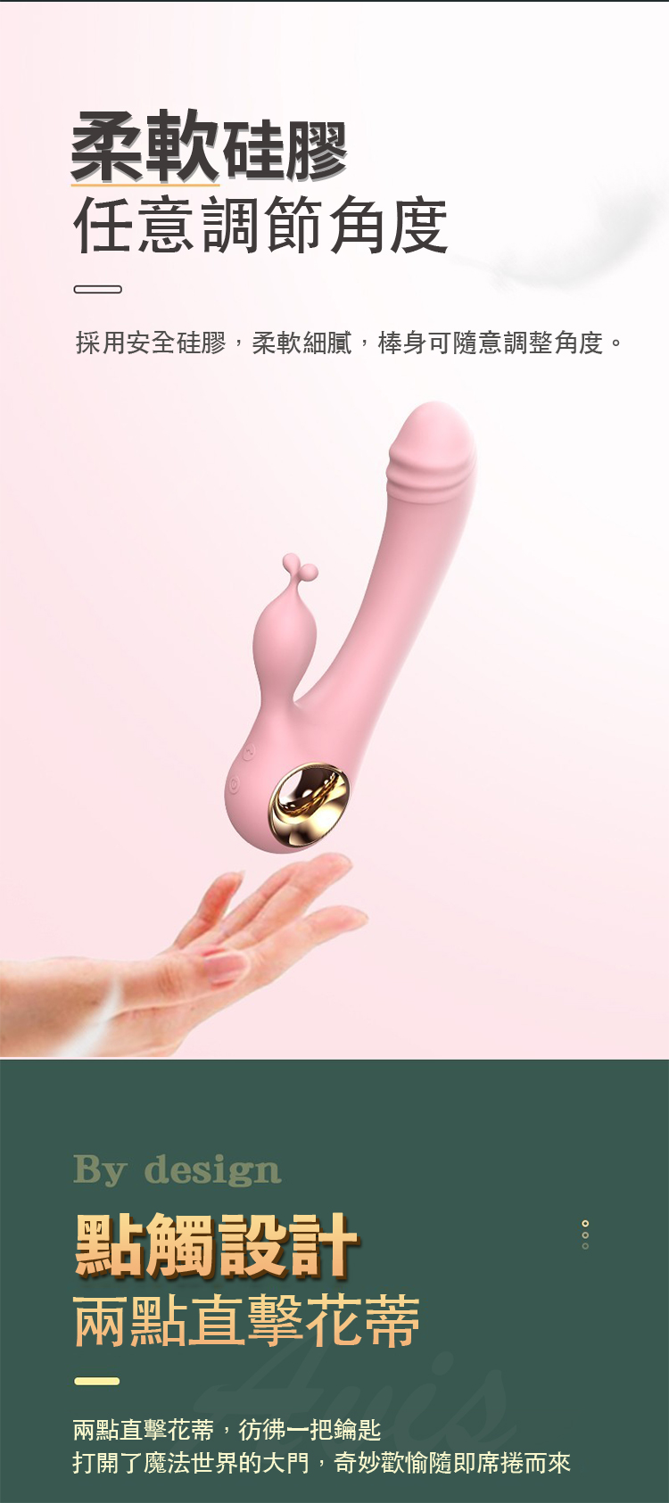 採用安全硅膠,柔軟細膩,棒身可隨意調整角度。