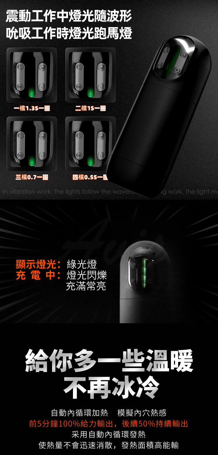 硬核震動(10檔)/操控自動吮吸(4檔)/雙擊開關鍵自動加溫/