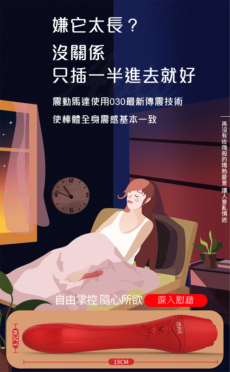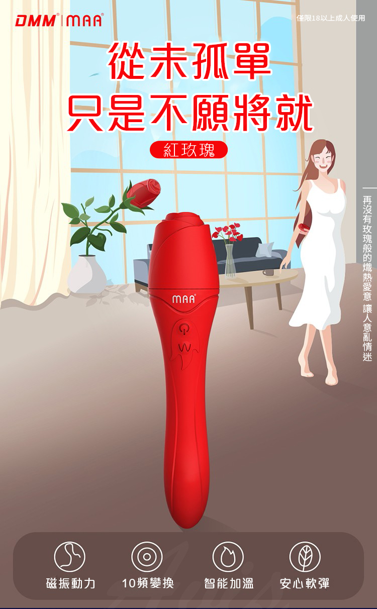 DMM-玫瑰棒 10段變頻 磁震動力加溫軟彈矽膠按摩棒